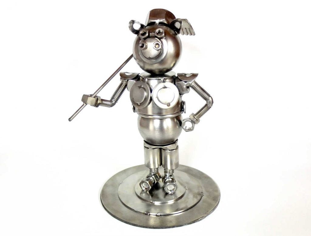 化腐朽為神奇的鋼鐵小巨人,台灣第一屆鋼鐵藝術節冠軍。以丟棄的螺絲、螺帽、火星塞或損壞的門閂、鍋蓋、湯匙、軸承或是日常生活中的五金廢料,經過巧思打造出機器王國。罕見的廢白鐵在擺放一段時日後,會自然產生風化繡狀。