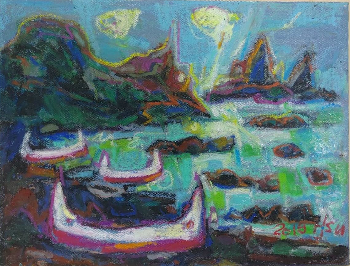 擁有空間設計的歷練,加上素描的基礎,在畫布上揮灑自如。認為藝術家的養分及靈感來自他們所生活的土地,創作不能離開所生活的土地。每週二次,上山下海寫生,經年累月風雨無阻。鄭自才的作品畫風狂熱,顏彩豐富、鮮豔,畫布上揮灑滿溢對台灣的感情。