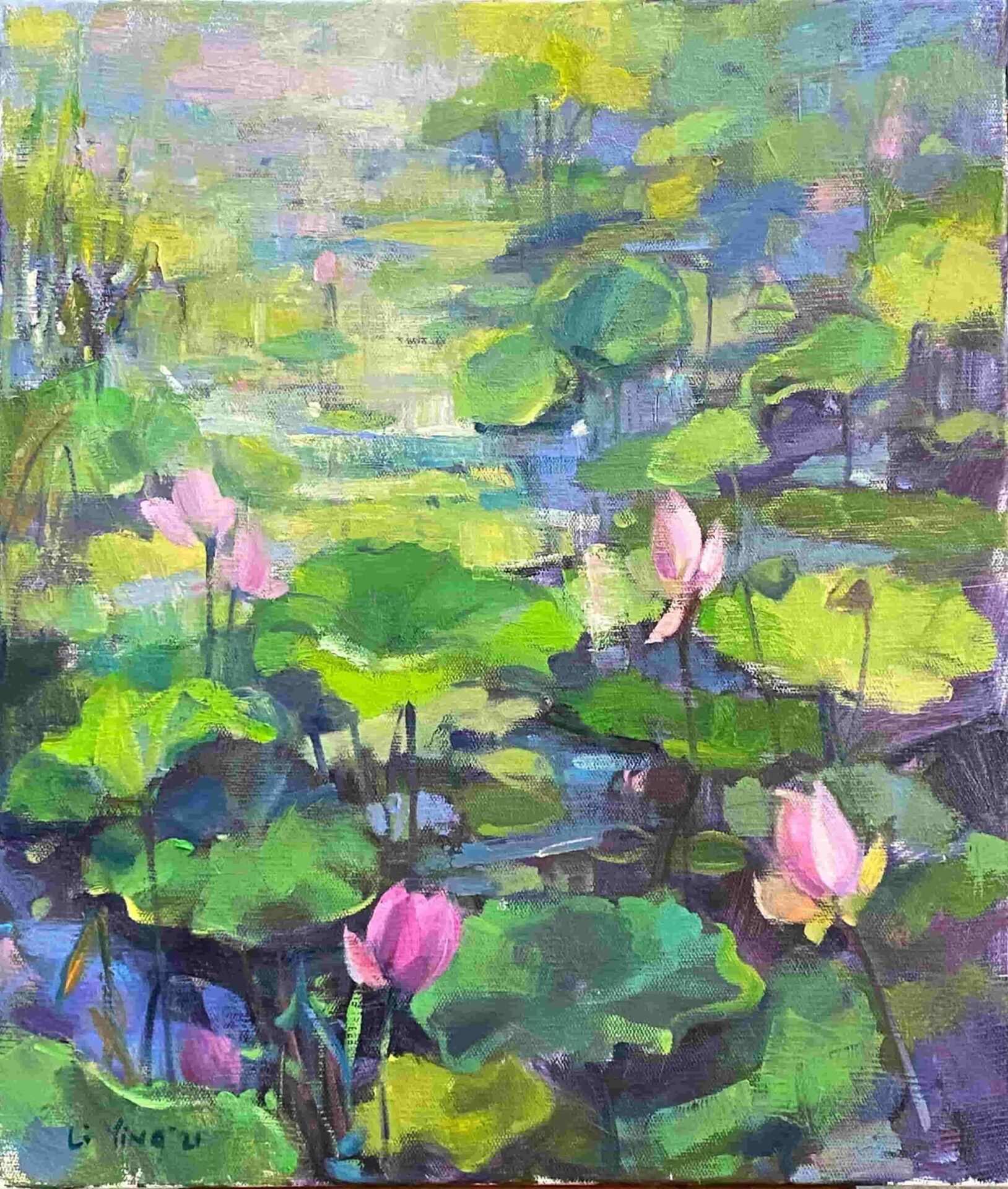 高師大美術系研究所,高雄市南風油畫學會榮譽理事長。「繪畫詮釋」對她來說是一種平凡、一種生活、一種簡單!嘗試著放慢腳步,看看周遭的人、事、物、在簡單的生活裡嘗試著發現美好,享受著一種簡單的幸福。