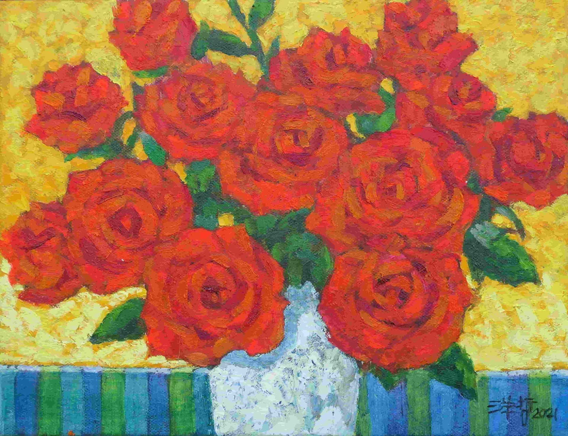 1944 年生於新竹市崙仔,曾受李澤藩、李梅樹、楊三郎、廖繼春、洪瑞麟與劉煜等名師啟迪。1986年前往巴黎第十七版畫研究中心接受海特教授(Prof.S.W.Hayter)的指導,轉向版畫創作。1995年後,他回歸油畫創作,但版畫創作仍未停歇,展現他對藝術創作的強烈企圖。學院派出身,及版畫創作技法的訓練下,使他對多元媒材具靈活掌握能力。