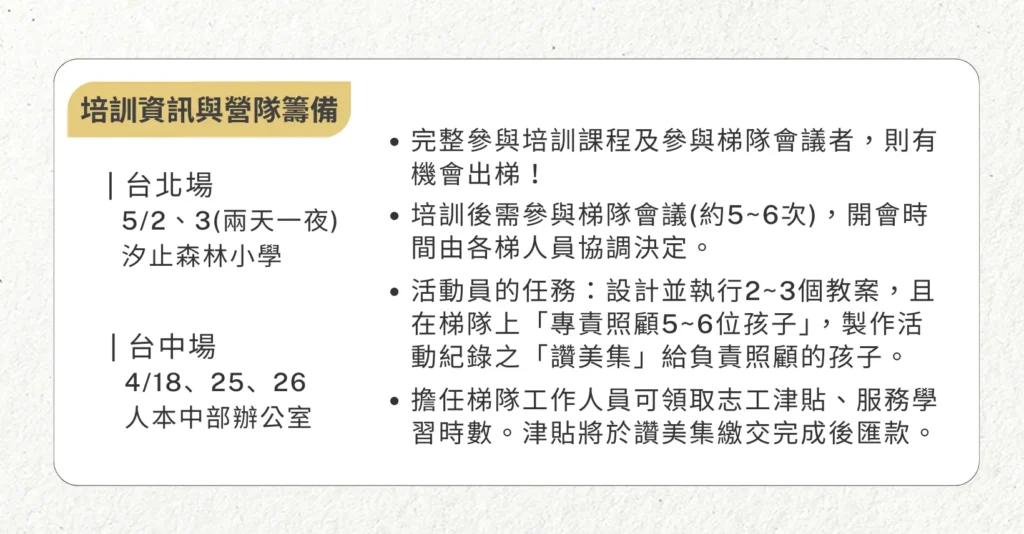 活培課程請務必要全程參與唷!不僅要上課,更要參加梯隊的籌備會議,才能夠擔任活動員唷!