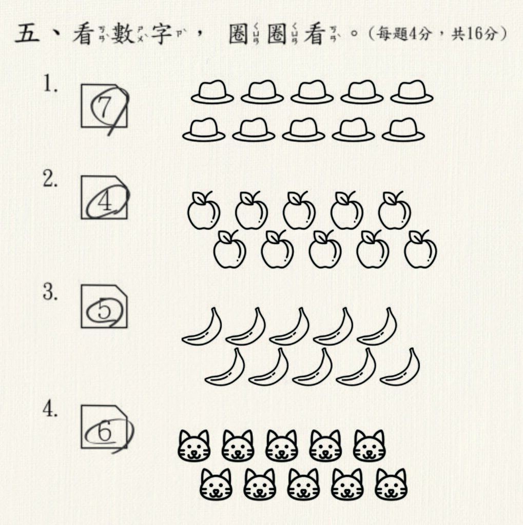 這題可以這樣修改:把原本只寫一個7的地方改為「圈出7個」: