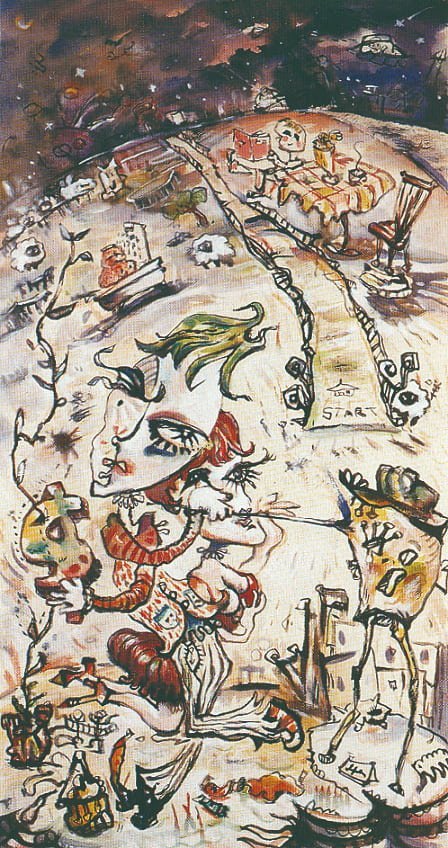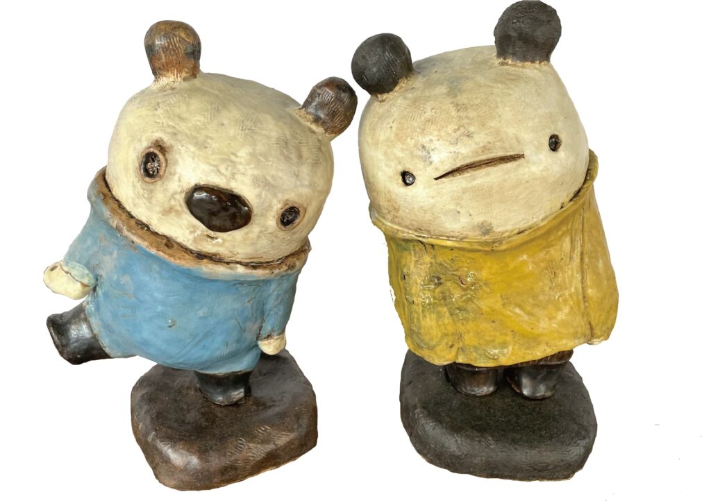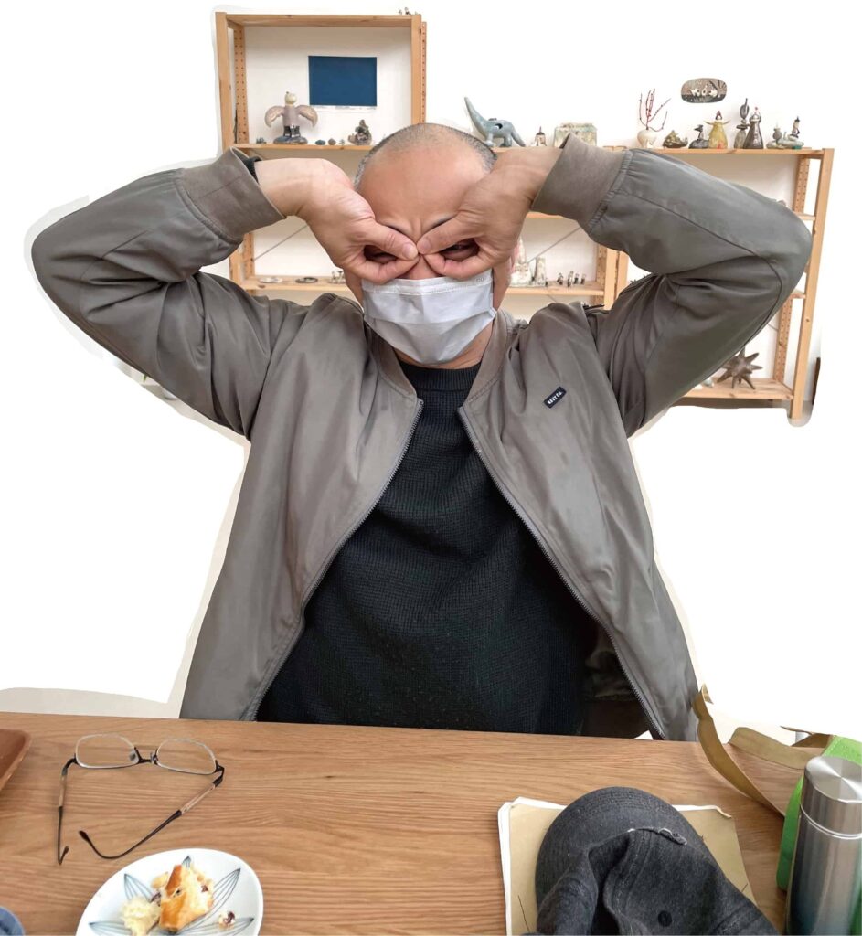 阿咧不想去做跟畫畫不相關的事情,一直在這個領域上掙扎求溫飽,三十歲左右,在南山高中的中和社區大學接觸陶藝課程,課程從杯子盤子開始,充滿想像力的阿咧就會想要加個角加個腿,社大老師們讓他自由亂試從錯誤中學習,阿咧玩得不亦樂乎,像開了新領域似的,以前畫裡平面的奇想,他都想用陶作將它們立體化。