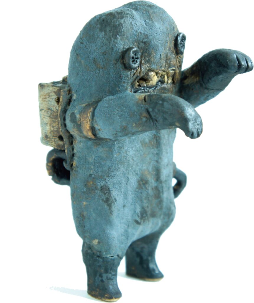 春江獸張著嘴露出滿滿尖牙,可愛中帶點猙獰,性格似乎友善靦腆,眼神充滿好奇,似乎有話想跟人類說。數十位「小怪」各有各的姿態,表情幽微特別,有的帶著笑似乎意有所指,有的貌似憂傷或心懷不軌,有的張牙裂嘴看似兇狠又天真浪漫,讓人不禁懷疑裡頭是否停駐著可跟人類溝通的生命?