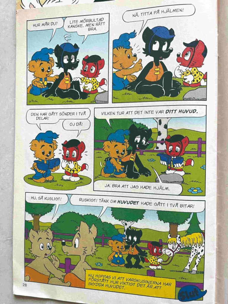 如果不裝神弄鬼恐嚇小孩,瑞典大人如何對小孩設下界限呢?我在瑞典學到的一個原則是「堅持重要的、與生命安全有關的規定,並且清楚知道規定背後的原因」。例如,兒童專科護理師教我們要讓小孩從小就要坐著吃飯,原因是避免噎到、怕有生命危險,父母跟老師都會以此跟小孩說明,並且確實執行。又例如,小孩滿16歲之前,騎單車都要戴安全帽,在瑞典也會看到許多大人騎單車戴安全帽,有些人是以身作則讓孩子跟著做,但也是保護自己——尤其在下雪後結冰的道路上,即便是單車事故也可能極度危險!小孩看的漫畫週報上也會跟小孩說,如果騎車沒戴安全帽,跌倒時,頭就有可能像摔破的西瓜一樣。大家都了解遵守某個規定或原則的背後原因,所以在瑞典不會看到只把安全帽「放」在頭上卻沒繫好的「應付警察」的方式,也不會出現像台灣這樣,規定了後座要繫安全帶、要使用嬰兒安全座椅,但許多人卻以「反正這裡不會抓」而沒有確實做到。