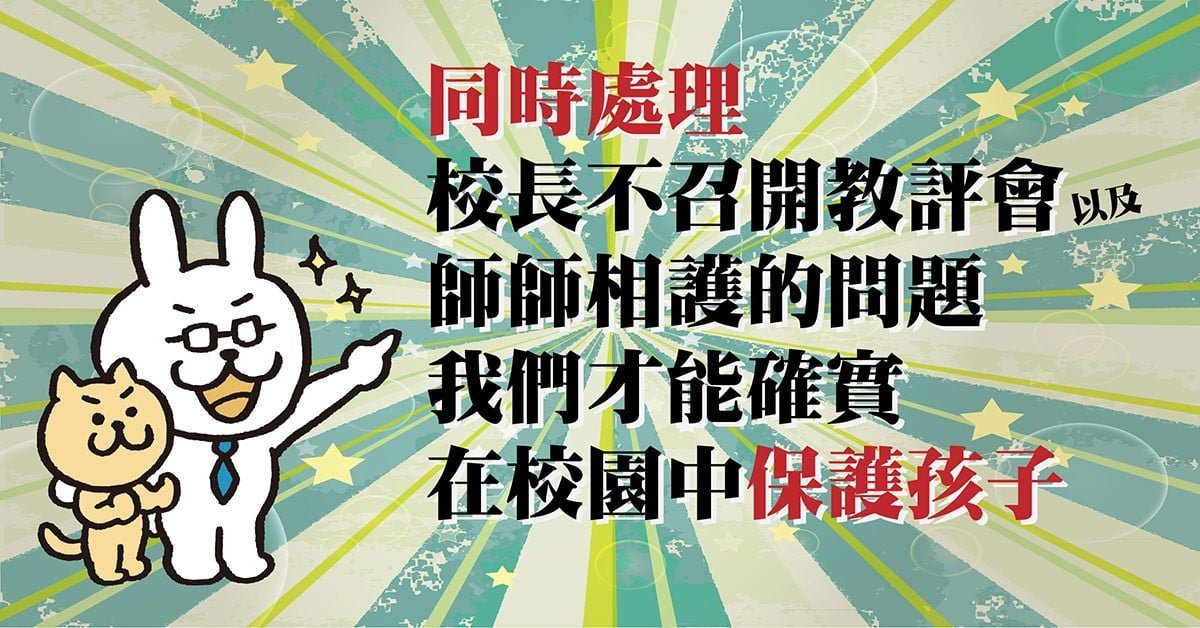 然而,教師團體卻出面說:「哪裡有師師相護,你給我數據啊」教師團體還說:「把校長沒有啟動處理怪罪不相干的教評會,根本是搞錯對象。」