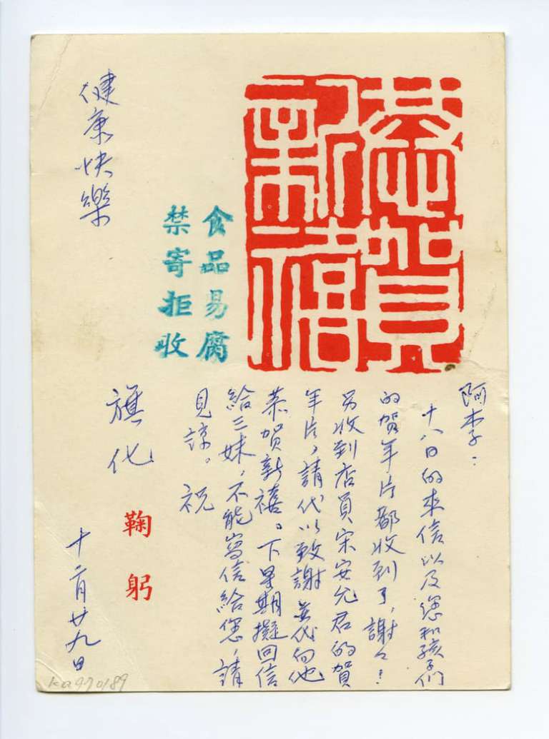 一九六四年一月二十四日的信件裡,柯老師要求柯媽媽:「你來接見的時候,請順便送些糖果、水果、西點、火腿等等,當然是愈多愈好。」(註二十二)十年過後,在一九七四年二月四日的信件裡,柯老師再次叮嚀柯媽媽:「若要和孩子們前來面會,請順便多帶些食品、糖果、水果等以便分給大家吃。」(註二十三)如果說,殘酷的監獄裡充滿了鬥爭與蒼白,那麼柯旗化老師對其他獄友的物資分享,便宛如暖陽的光亮,為威權時代的黑暗與苦難帶來了人性的互助與生存的希望。