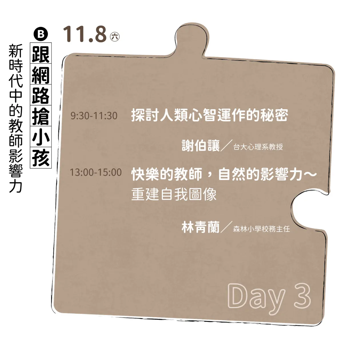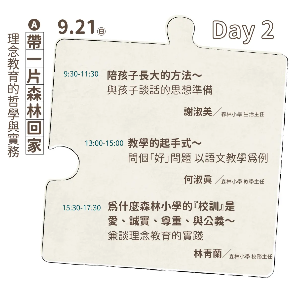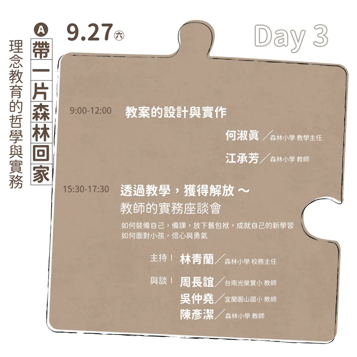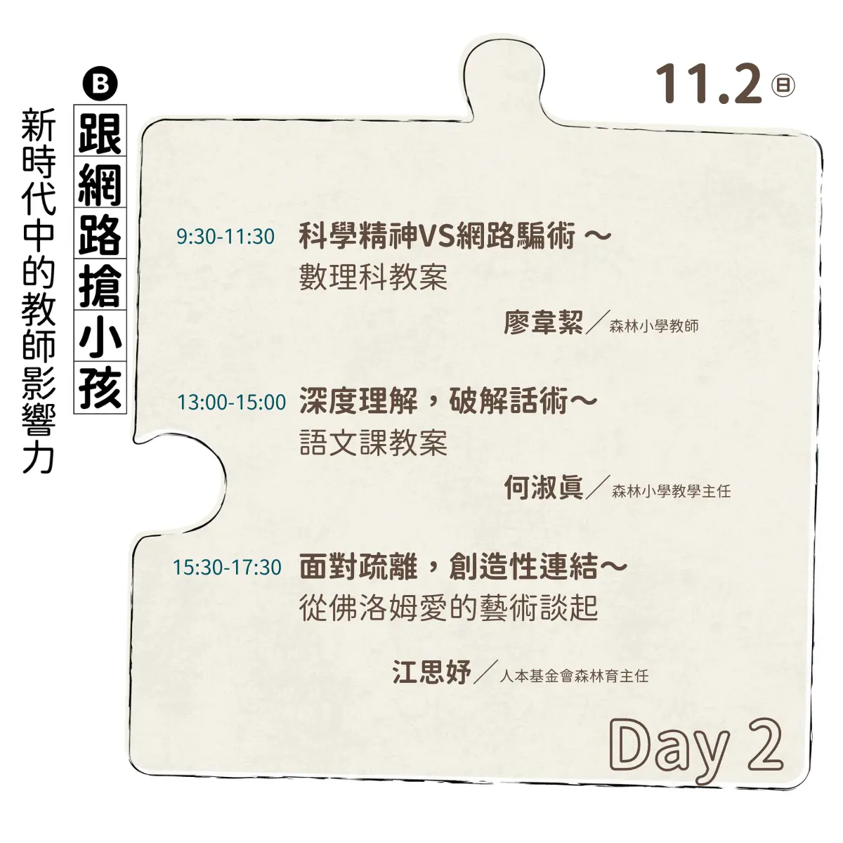 ※ 完整參加工作坊A或B,皆可於面試後到森林小學現場進行兩階段教育實習,名額有限!機會難得!